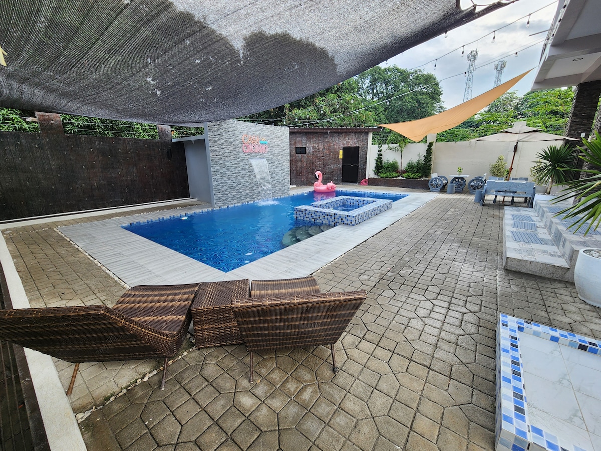 Enjoy a peaceful, family-friendly retreat at Casa Oxciano! 😊 Up to 50 pax (25 sleeping capacity) 🏊♂️ Pools (3ft-5ft depth) + Kiddie pool 🏠 2 AC rooms, private baths 🍽️ Basic Kitchen 📶 Free Wi-Fi 🏓 Table Tennis 🎱 Billiards 🃏 Card and Board Games 🎤 Videoke (strictly until 10 PM ONLY) 🚗 Gated parking (7-10 cars) 🎥 CCTV 🎮 PS4 Arcade (Not free/coin slot-operated) 🏀 Basketball (bring your own ball) 🚗 Parking up to 10 cars 🐶 Max of 2 pets allowed