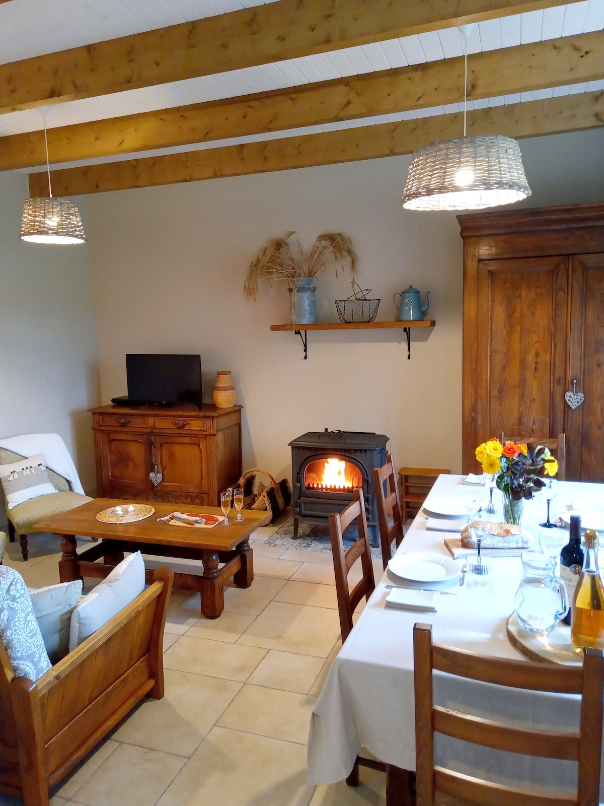 Tradicionalna kamnita hiša na mirni lokaciji, obdana z vrtom, na podeželju Bretanje. Celotna prenova bo zaključena leta 2025 Samostojna nastanitev s 5 spalnicami, vključno z eno, ki je primerna za osebe z omejeno mobilnostjo. Kopalnica s prho. V prenočišču Jeanne boste imeli vse udobje, vse leto, za največ 10 oseb v 5 spalnicah z 2 kopalnicama in 2 straniščema. Velika dnevna soba z odprto kuhinjo in prostorom za sedenje, ki je urejen okoli udobne peči na drva.