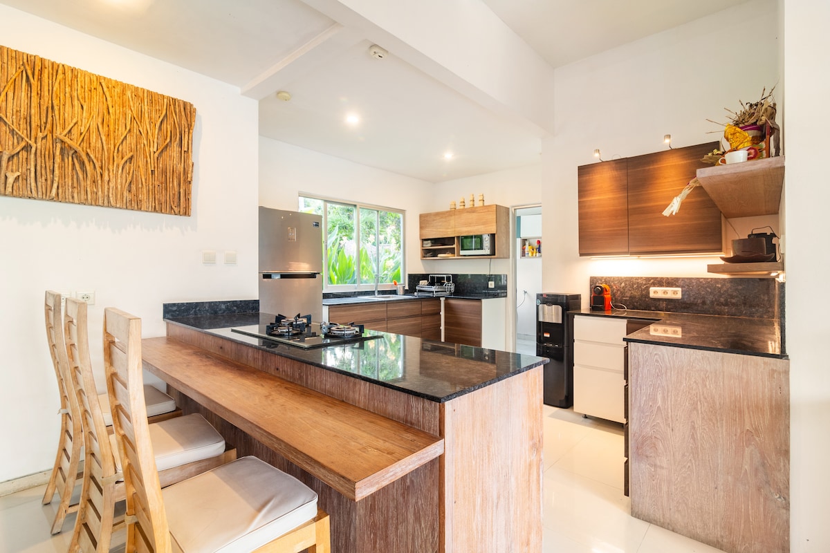 The Villa Senja is a unique beachfront house with a luxurious and still authentic atmosphere due to the unique, handcrafted Balinese style interior which features an open living room with a professional billiard, 4 bedrooms with ensuite bathroom and a huge swimming pool (18x6 meters with natural balinese stones) Lay down in the gazebo, watch the stunning sunset from the terrace, have a cocktail in the swimming pool & enjoy your time in Bali.