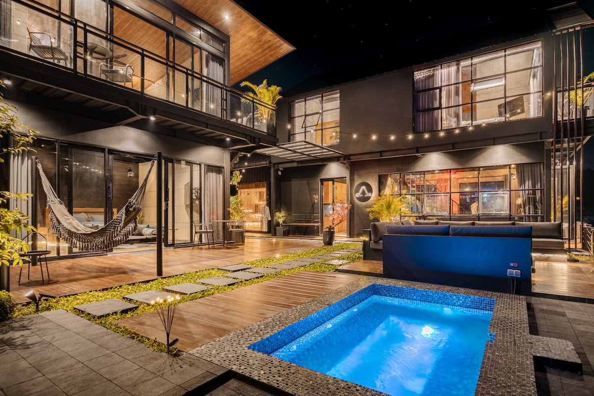 Lake Life Villa is a brand-new 4-bedroom lakefront retreat in Bedugul, Bali. Enjoy lake views from every room, a private sauna, 2 jacuzzis, and a cinema with a 120" screen. Stylish industrial-modern design, daily breakfast, full kitchen, and 2 housekeepers. Outdoor lounge, hammocks, and nearby rainforest, golf, waterfalls, and restaurants complete this luxurious lakeside escape.