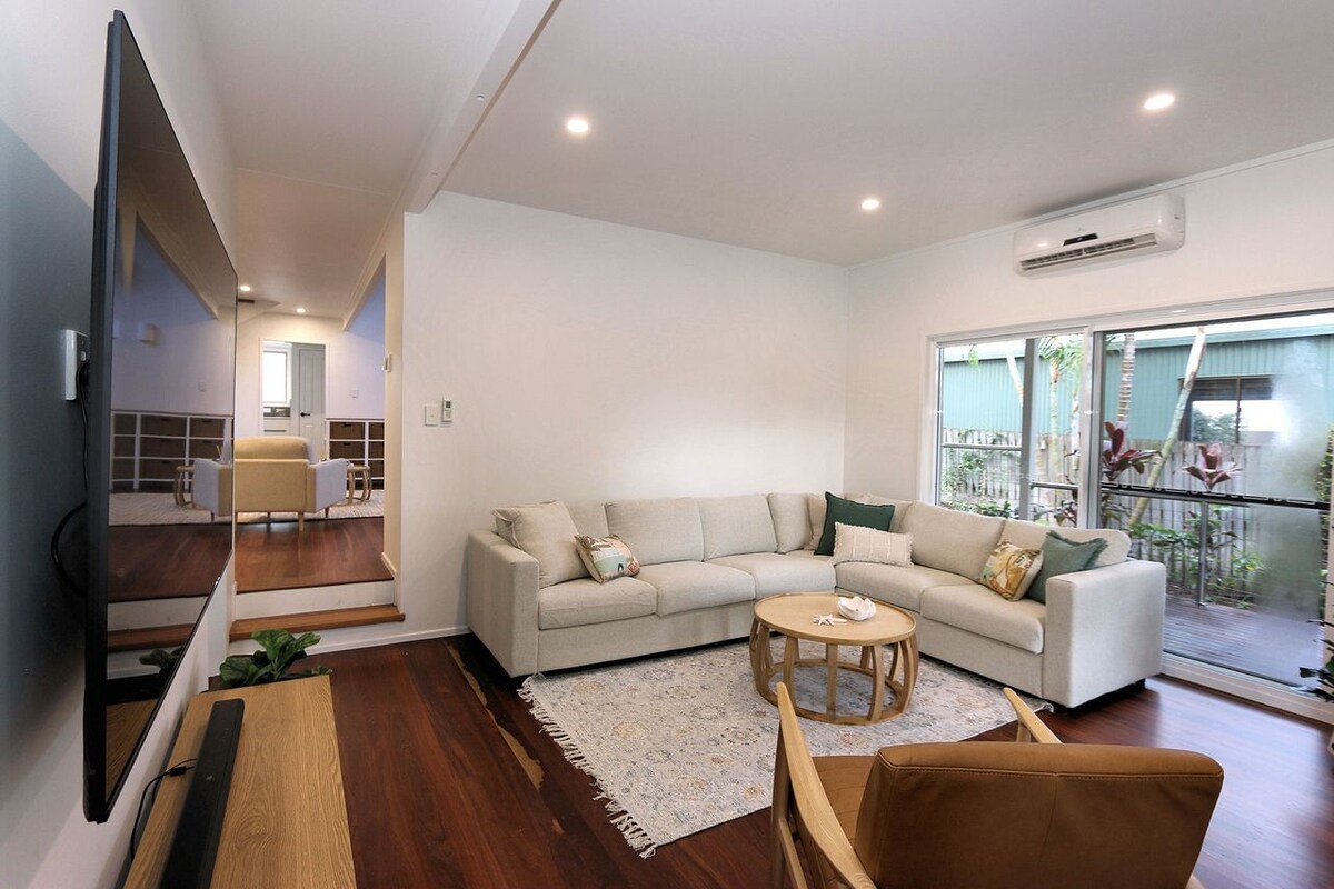 Enjoy a stylish experience at this centrally located place. At Bundaberg Dream you can enjoy a beautifully designed home that boasts 3 large bedrooms, two new modern bathrooms and a fully functional kitchen with dishwasher, microwave and Nespresso coffee machine . There is also a cosy fireplace, and a refreshing plunge pool. There are two dining areas a wine fridge and gas BBQ. The home is air conditioned and has ceiling fans throughout. Features beautifully manicured gardens.