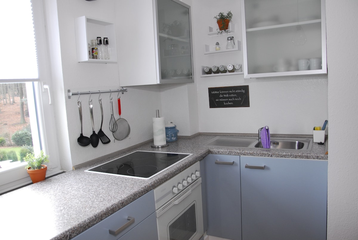 Calm and cosy level-access bedsitter apartment with shower bathroom, separate toilet, fully equipped kitchen, coffee machine, water kettle, microwave, toaster... Supermarket across the road, an ice cream cafe, a pub and a doner kebab shop next door, <100 m to pizzeria, bakery, coiffeur/barber, chemistry. 10 minutes by car to Werrepark, Bad Oeynhausen, various clinics, Aquafun etc. Nice countryside, river Werre within walking distance, river Weser at approx. 5 km, bicycles available for rent.
