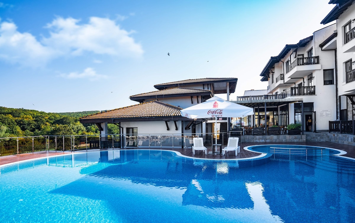 St. George's Complex is a new build complex of studios and one bedroom apartments providing a swimming pool and sea views, set in a quiet, natural area of Shkorpilovtci, approx. 600 meters from the beach surrounded by a beautiful forest.Tranquility ,is the key word to describe the place. The air-conditioned suites are equipped with a flat-screen TV with cable channels, a balcony with sea views, a seating area with sofa and a bathroom with shower.