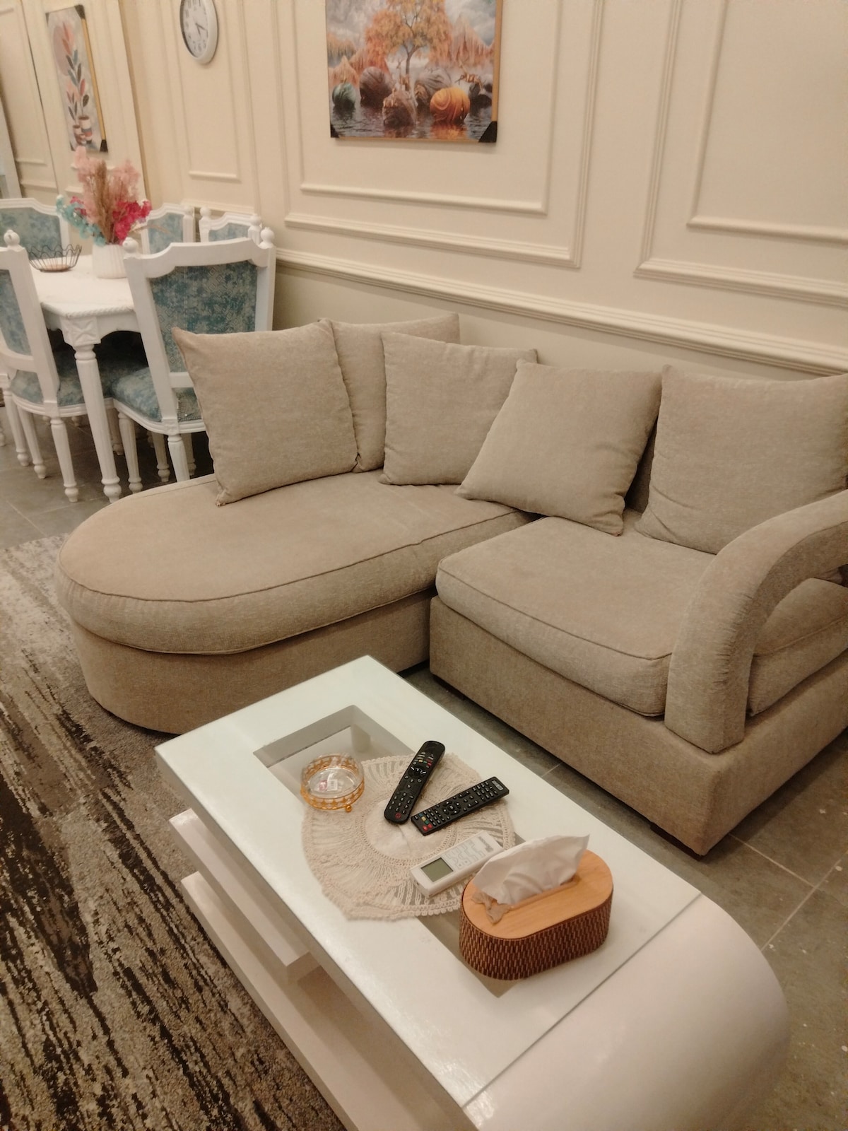 To je moje bivališče za oddih ob Medditranskem morju, severni del Egipta. Zato je vsak kotiček opremljen z drobnimi detajli, da bo vaše bivanje udobno. Za to bivališče sem ustvarila tudi vsa umetniška dela na steni. Uživate lahko v vetriču z ene od dveh teras s pogledom na velik skupni bazen ali pa se odpravite v zgornje nadstropje, da opazujete sončni zahod na strehi ter uživate v kozarcu vina in se potopite v svoj zasebni potopni bazen s pogledom na čudovito Sredozemsko morje.
