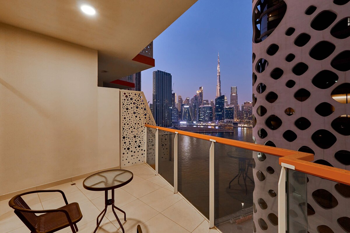 Chic modern studio located in the heart of Business Bay. Enjoy hotel-style amenities including a swimming pool, fully equipped gym, secure parking, and 24/7 security. Minutes from Downtown Dubai, Dubai Mall, and the Canal. Wake up to a stunning Burj Khalifa view and unwind with beautiful Dubai Canal views from the comfort of your studio. Ideal for business travelers and couples seeking comfort, convenience, and a stylish experience in a centrally-located place.
