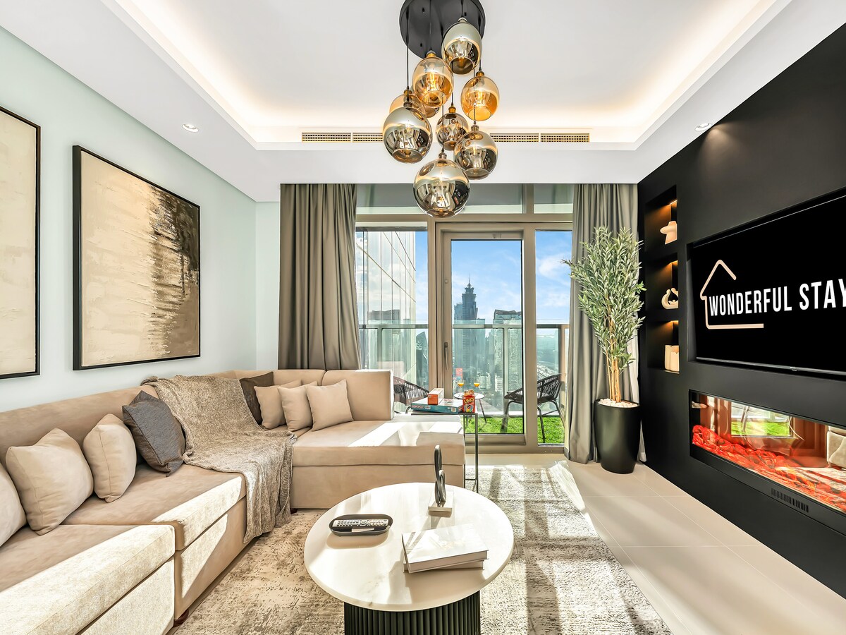 Luksuzno prenočišče z 2 spalnicama | Ikoničen pogled na Burj | Parkirišče + PS5