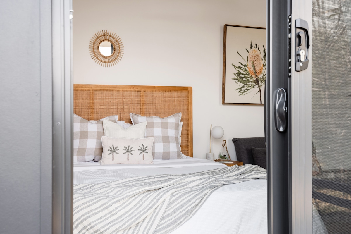 Self contained cosy King Studio in a quiet, private location in Burleigh Heads. Set beneath a midcentury modern home built in 2019, you’ll feel immersed in nature yet still close enough to walk to everything Burleigh offers. A short stroll to shops and only 10-15 minutes walk to the famous Burleigh Beach. Why stay with us: We value cleanliness, attention to detail, privacy, quality, plus complimentary drinks on arrival to enjoy with sunset views. Great location. We look forward to hosting you!