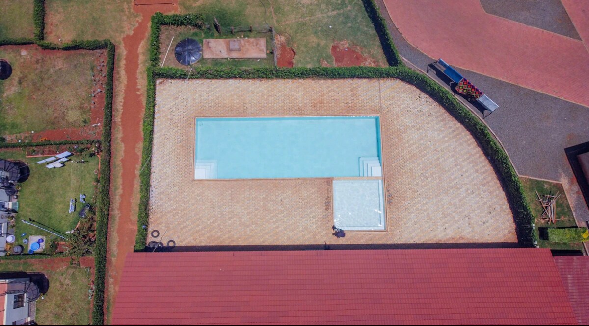 Udoben apartma s tremi spalnicami v mirni soseski, ki lahko sprejme do 6 oseb. Pripeljite vso družino v ta čudovit kraj, kjer imamo; 1) otroško igrišče 2) bazen 3) klubska hiša 4) Telovadnica Bližnja oprema vključuje; 1) nakupovalno središče Rupa in nakupovalno središče Zion Mall - 9 minut vožnje 2) Letališče Eldoret je oddaljeno 10 minut vožnje 3) Zabaviščni lokali v bližini (TMT, Tamasha, Relax Inn) 4) Bolnišnice (MTRH, Reale, Eldoret in Mediheal ) 5) Zunanji in hoteli (Lobo Village - družinam prijazno z vsemi otroškimi dejavnostmi)