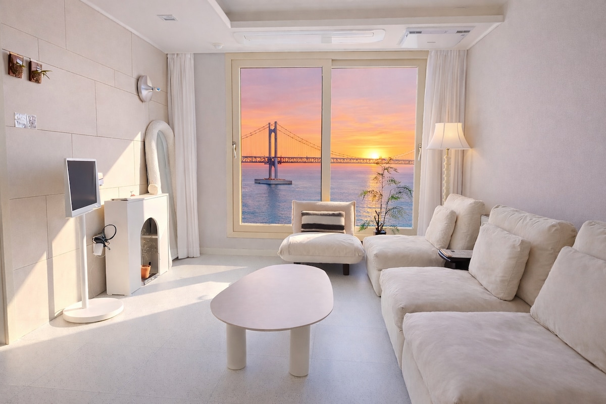 [Skrivna oceanska soba Gwangan] »Morje pred vami, ki ostane v občutljivosti.« To je čustvena nastanitev s pogledom na ocean, kjer sta se most Gwangan in morje razširila skozi odprto okno. Uživajte v sproščujočem času ob glasbi v udobnem prostoru, polnem 📍naravne svetlobe. To je prostor, ki bo zaključil vaše potovanje v Busan. Idealno za pare, družine in prijateljska potovanja. Gwangan Bridge Full Ocean View Tik pred plažo 📍Gwangalli. Uživajte v čudovitem razgledu na most Gwangan v spalnici in dnevni sobi ob istem času. »Pogled na most Gwangan pred vami in prijeten počitek.« Doživite poseben dan v tem zasebnem prenočišču s pogledom na ocean. Pogled na ocean skozi ✔️sprednje okno ✔️Čustvena notranjost in Marshallov govornik ✔ Novo stanovanje, najbolj priljubljena nastanitev v Gwangalliju ✔ Panoramski pogled na ocean + pogled na mesto + pogled na most Gwangan ✔ Čustvena notranjost in vrhunska oprema Milak ✔ The Market and Live Fish Center walk away Najboljši razgled z drugačnim šarmom 📍podnevi in ponoči. Delite svoje življenje s svojimi najdražjimi.