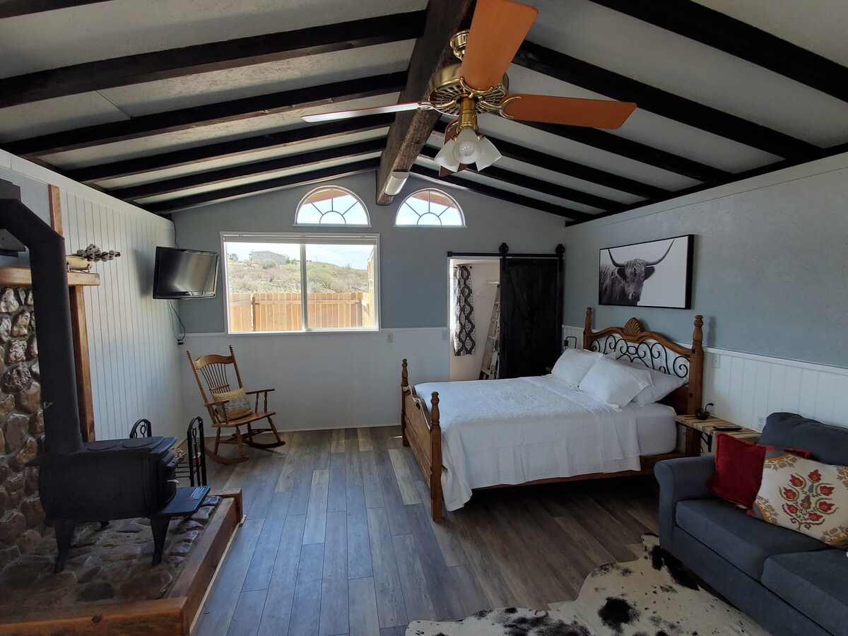An incredible and intimate space with vaulted ceilings, a curated garden, and hand-painted floors. Not a single detail has been overlooked in the creation of this beautiful guest studio apartment. Enjoy evenings on the patio, surrounded by the warm glow of bistro lighting or whip up a delightful breakfast in the fully stocked kitchen for a comforting, slow morning. This home is the perfect place for deep relaxation, thoughtful meditation, or just a simple escape from busy life.