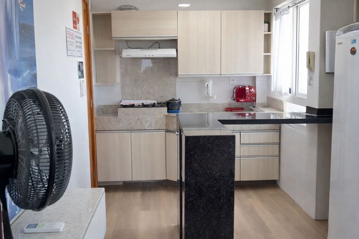 Wi-Fi grátis e estacionamento rotativo SmartTV LED 40" Alimentação e bebida: cozinha americana com frigobar cooktop, micro-ondas, cafeteira e saunduicheira Ar condicionado Split Banheiro: banheiro privativo com chuveiro, toalhas. Conforto: controle climático, cama Queen ultra confortável. Não oferecemos serviço de limpeza diária. Longas estadias, o serviço de limpeza pode ser negociada antes da reserva. Café da manhã não incluso na diária*