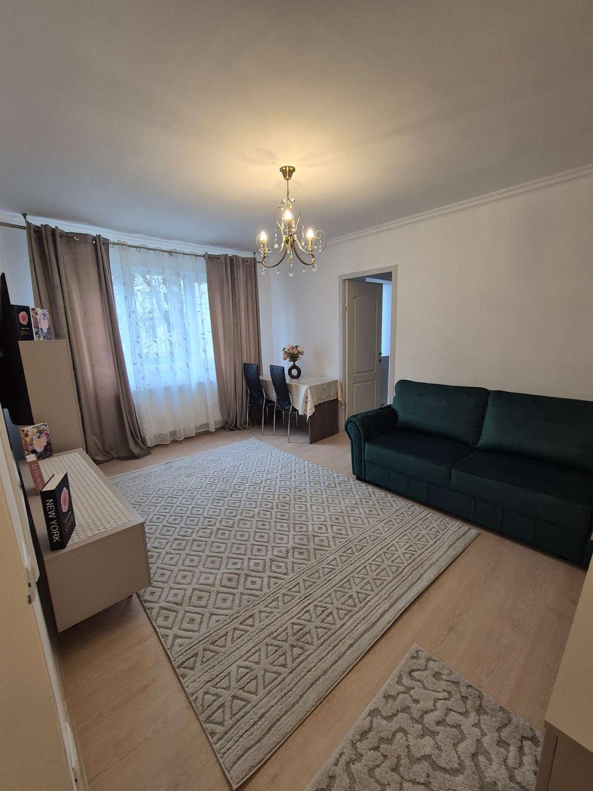 Na novo prenovljeno enosobno stanovanje v bližini središča mesta. Ne glede na to, ali potujete sami ali pa ste par, bo to popoln oddih. To prostorno in sodobno stanovanje ima elegantno notranjost, udobno dnevno sobo, ločeno kuhinjo in kopalnico. Stanovanje ima hiter internet Wifl, kabelsko televizijo in pametno televizijo. Kuhinja je sodobna in minimalistična. Vključuje vso opremo, ki jo boste potrebovali med bivanjem