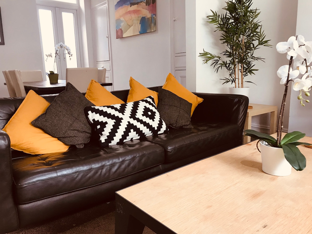 A peaceful, beautiful and spacious apartment with high ceilings, parking, and amazing views from the balcony. The apartment also offers a large 55" TV, pocket sprung mattresses and a pool/air hockey table. You have the whole apartment to yourself! Sleeps 4 people in 1 king and 1 double bed. There is also a small sofa and recliner. Great location, within 10 minutes of Cardiff Bay, the city centre, Principality Stadium, and Whitewater activity centre, the Millenium Centre and more.