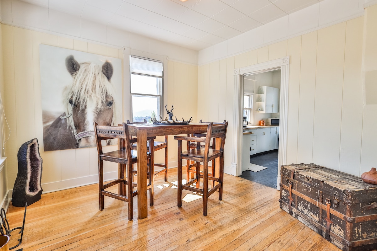 Naše moderno industrijsko predelano stanovanje se nahaja v osrčju Uptown Butteja, poleg destilarne Headframe in v bližini številnih restavracij, trgovin, vinskih barov in pivovarn. To prostorno predelano stanovanje ima odprto kuhinjo/dnevno sobo, 3 spalnice, 2 kopalnici, pralnico in veliko družinsko sobo. Več kot 2000 metrov bivalnega prostora v zgodovinski stavbi.