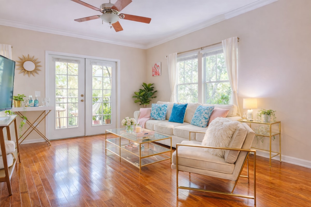 Čudovito očarljiv oddih z 2 posteljama in 2 kopalnicama, ki je lahek, zračen in tih in primeren za hišne ljubljenčke. ☀️ Vrednost v središču vsega, kar ponuja Gainesville ☀️ Tloris z zakonsko posteljo (ZAKONSKA postelja) z osrednjimi bivalnimi prostori ☀️ Zasebno popolnoma ograjeno dvorišče ☀️ String luči in zasebni ognjišče ☀️ Obokani stropi in dobro opremljena kuhinja ☀️ Vrhunske, udobne vzmetnice in posteljnina ☀️ Visokohitrostni Wi-Fi za delo na daljavo ☀️ Eno nadstropje, brez stopnic ☀️ HIŠNI LJUBLJENČKI SO DOBRODOŠLI ☀️ 3 km od UF, stadiona Ben Hill in Shands