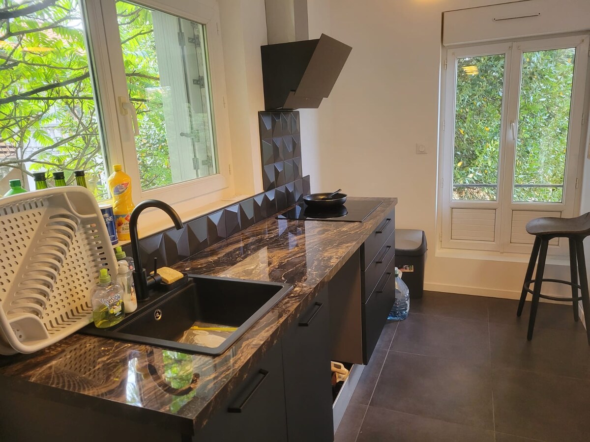 Bienvenue au Havre du Clain, à moins de 15 minutes en voiture du Futuroscope, de l’Aquascope et du centre-ville de Poitiers, et à 5 min du péage A10 Poitiers Nord. Notre studio, entièrement équipé pour 2 personnes, recherchant calme et nature, offre : • Un lit double confortable • Une cuisine équipée • Une salle d’eau • Un bureau (pour travailler ou pas 😉) • Un espace extérieur privatif 🌳 PS : Mousse, notre beagle adorable, vous accueillera avec joie dans le jardin. 🐶 Léonie et Thibaud