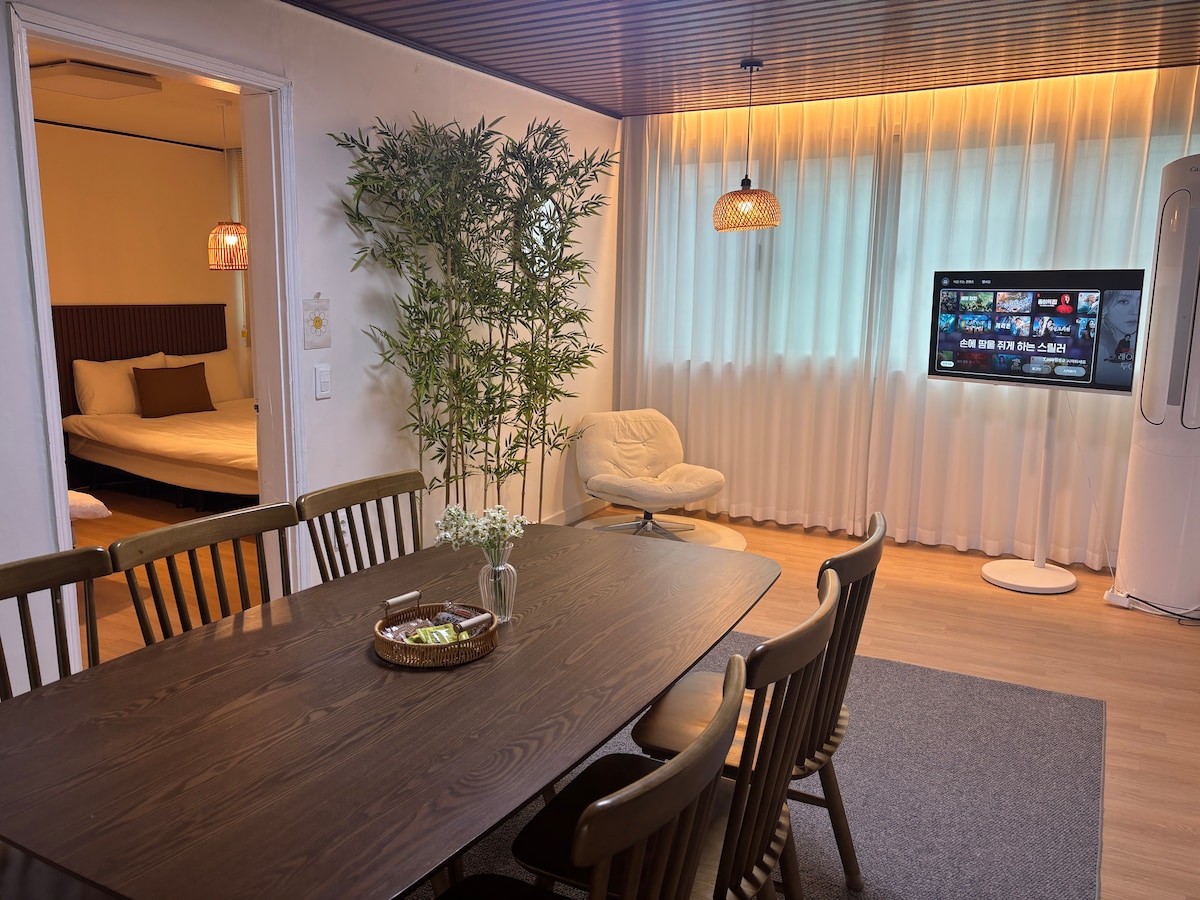 스테이 안유[安愉] 독채#호텔침구#30평 단독주택#침대3개#대전역도보10분,성심당도보12분
