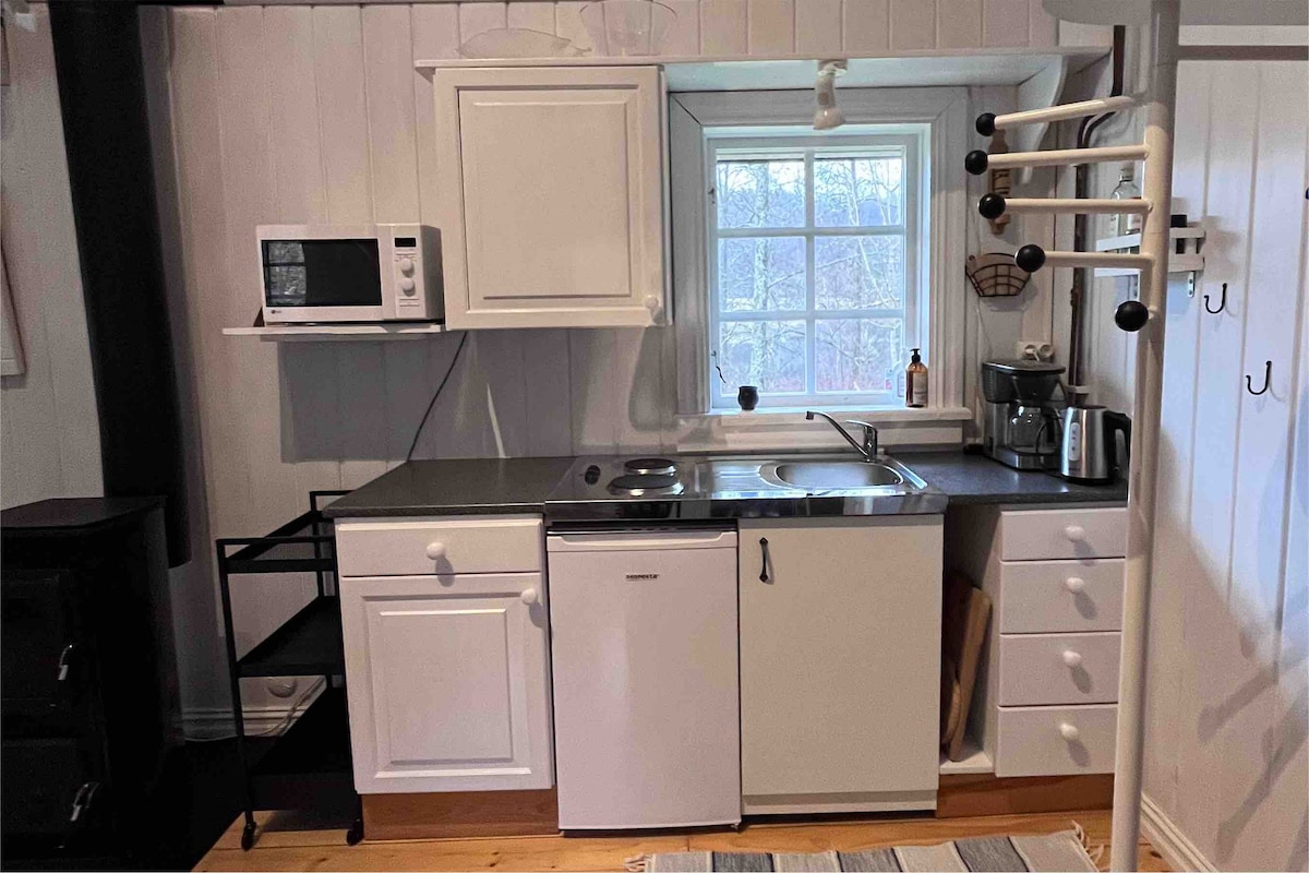 Mysig stuga i naturen – vedspis, djur & avkoppling