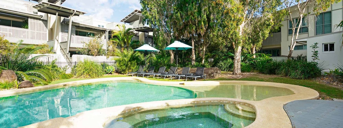Dobrodošli v svojem drugem domu na plaži Belongil Beach! To veliko in udobno stanovanje ima 2 prostorni spalnici z 2 kopalnicama in velikim lesenim dnevnim prostorom. Večerjajte v zaprtih prostorih ali na prostem na velikem zasebnem dvorišču z vgrajenim žarom in jedilnico. Prečkajte cesto do plaže ali pa se sprostite v ogrevanem bazenu in spa centru v letovišču. Byron center je lagoden sprehod po plaži ali po cesti. Popoln pobeg v Byron Bay.