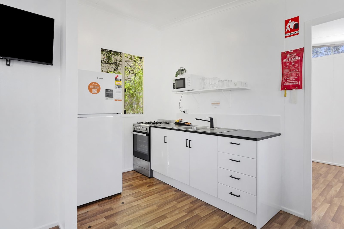Sodobna nova garsonjera nasproti plaže Belongil Beach s kratkim 10-minutnim sprehodom do mesta in 3 minute hoje do slavne restavracije in bara Treehouse. Garsonjera ima ločen vhod od glavne hiše. Kuhinja ima poln hladilnik, kuhalno ploščo, mikrovalovno pečico ( nahaja se v omari nad hladilnikom) in cvrtnik. Gostom je na voljo mini žar Weber. Ta koča ima vse, kar potrebujete za prijeten oddih ob morju, vključno s klimatsko napravo in ventilatorjem.