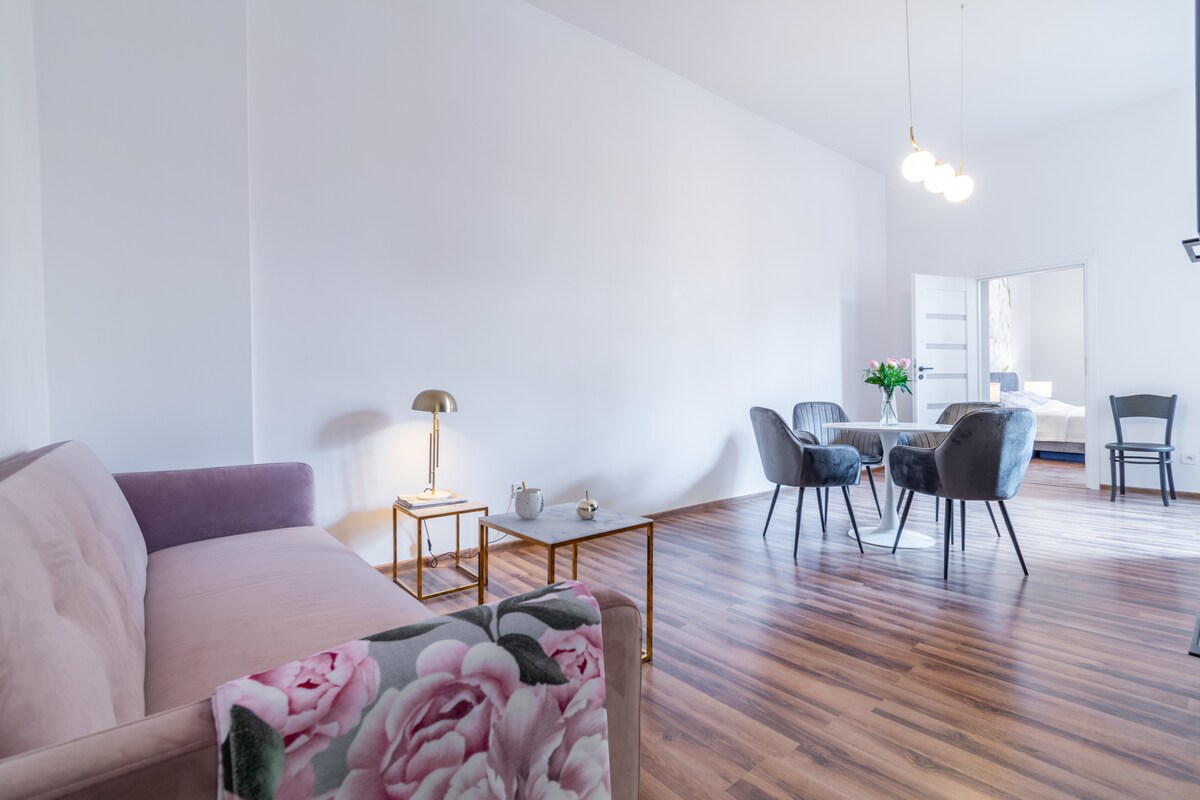 Izkusite vzdušje elegantne notranjosti, ki spominja na stanovanje v zgodovinskih pariških stanovanjskih hišah... Bivajte v udobnem apartmaju v srcu mesta: tik ob njem se nahaja tramvajska postaja, številne trgovine in restavracije, v bližini pa se nahajajo tudi Market Square, nakupovalni center in železniška postaja. Do centra Katovic boste hitro prišli, saj je le 15 km ( direkten tramvaj ali vlak).