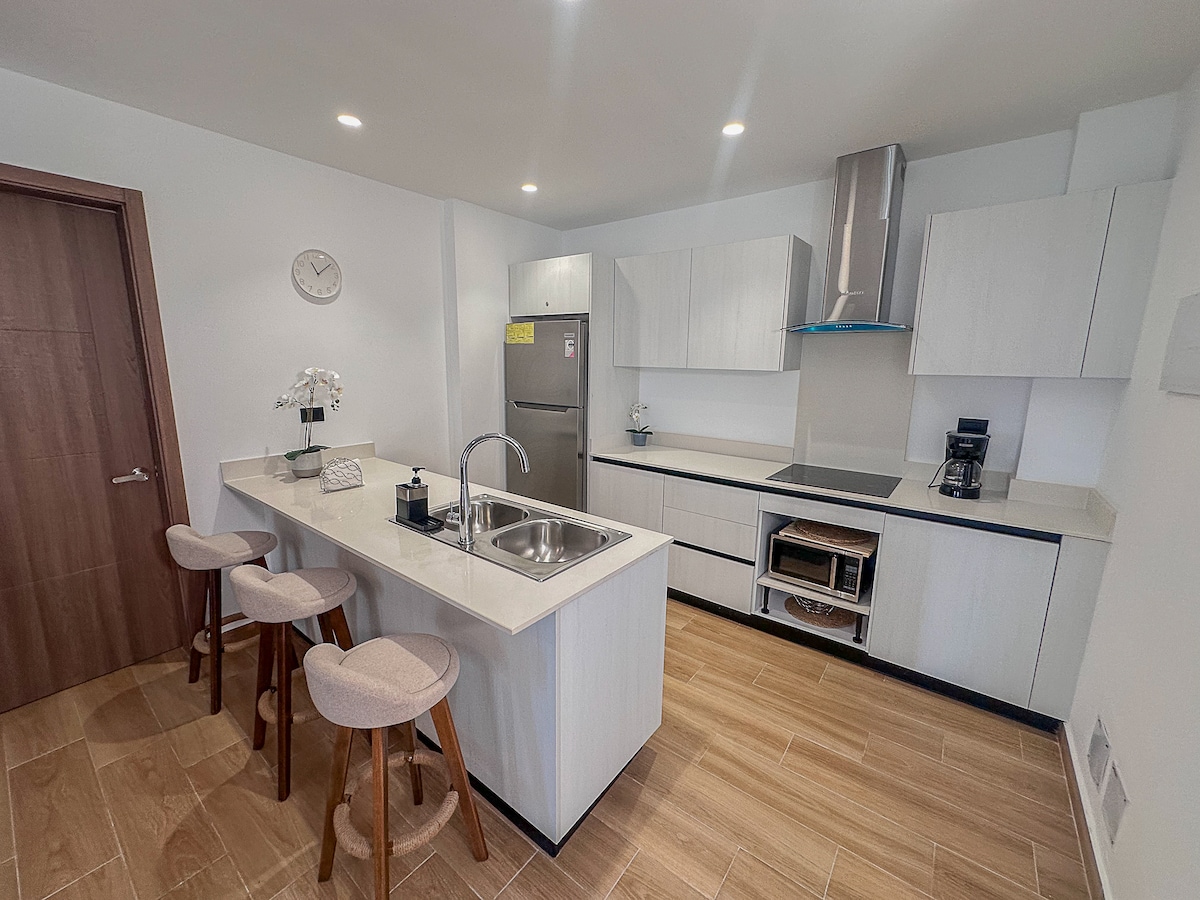 Dobrodošli v svojem tropskem oddihu v Punta Cani! To očarljivo stanovanje se nahaja v ograjeni skupnosti in ponuja edinstven zasebni balkon, telovadnico, igrišče za golf, več bazenov in umetno plažo z bari in restavracijami. Le kratek sprehod vas loči od lokalnih plaž, le nekaj minut pa od supermarketov, središča mesta Punta Cana in restavracij. Do letališča je 20 minut vožnje. Uživajte v hitrem Wi-Fi-ju, Netflixu in družabnih igrah. ✅Za porabo električne energije NE zaračunavamo dodatne pristojbine :)