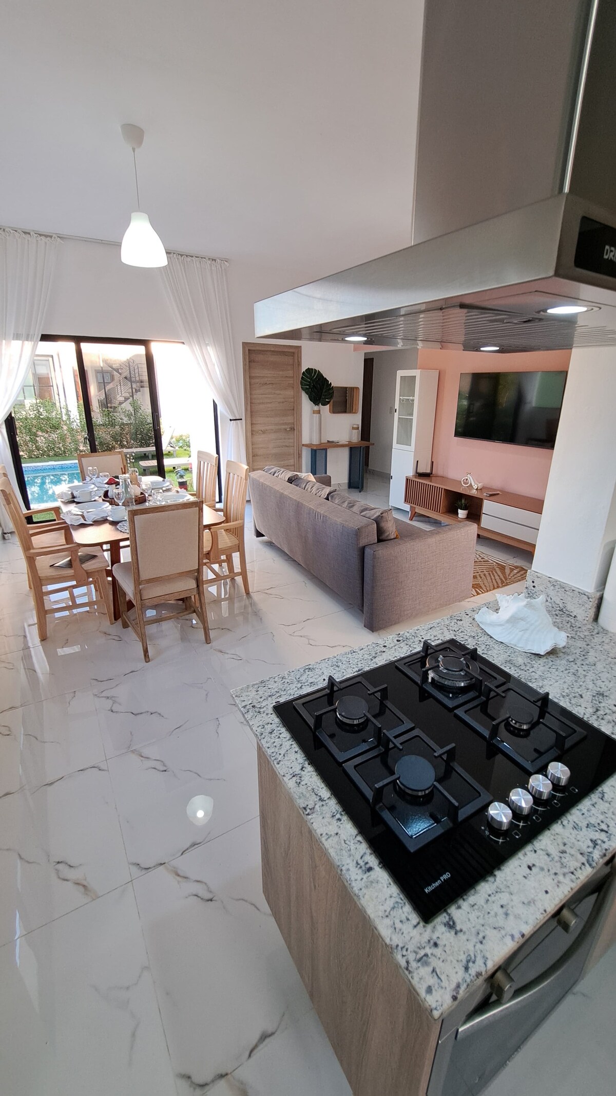 Uživajte v udobnem bivanju v tem prenočišču s 3 spalnicami in 3 kopalnicami v središču Punta Cane. Opremljen je s klimatsko napravo, hitrim Wi-Fi-jem, 2 pametnima televizorjema in zasebno teraso s Picuzzijem (brez vročega) ter ponuja popolno ravnovesje med udobjem in priročnostjo. Popolnoma opremljena kuhinja, varovano parkirišče, non stop varnost in velik skupni bazen zagotavljajo brezhibno izkušnjo. Le 3 minute od središča Punta Cane in COCO BONGA, 12 minut od letališča in 15 minut od plaže - rezervirajte zdaj!