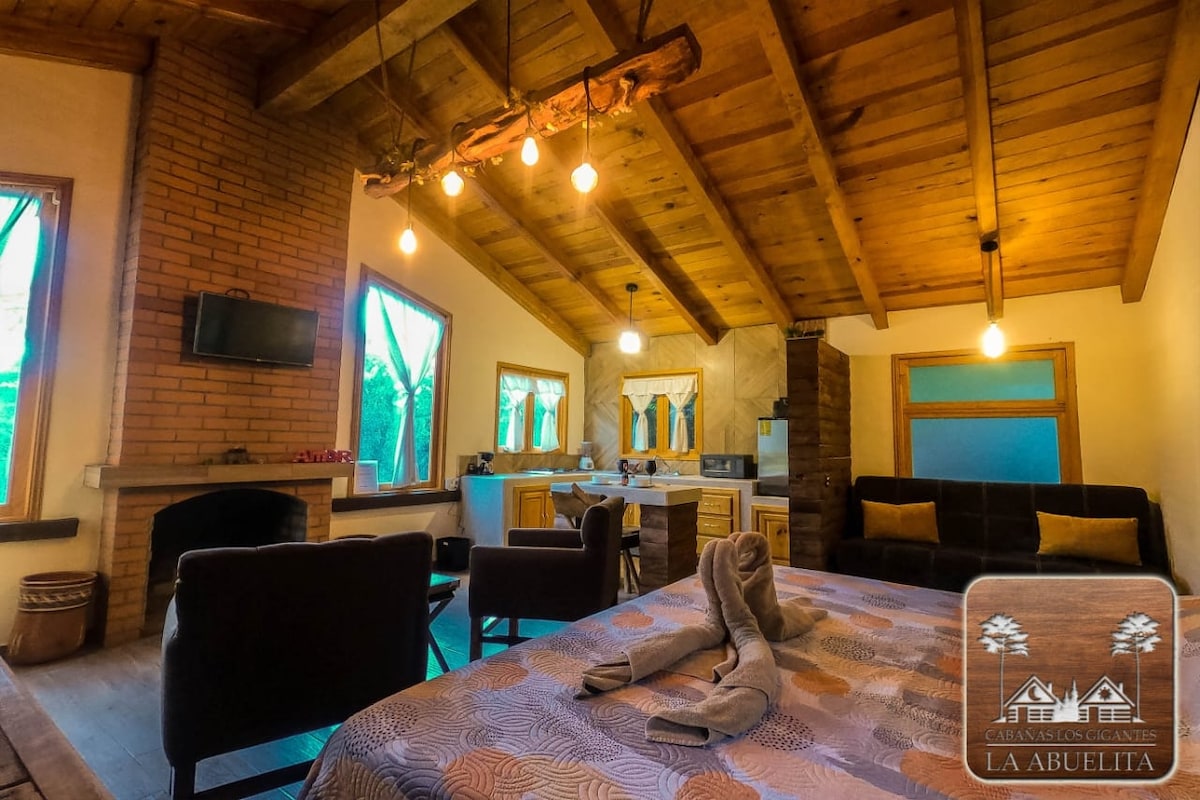 Uživajte v koči sredi popolnoma opremljenega gozda, da bo vaše doživetje nepozabno. Privoščite si razkošen počitek na kakovostnih vzmetnicah, zabavajte se na terasi z žarom in štedilnikom, preživite romantično noč na terasi s kaminom. Naj se vaši otroci zabavajo na sprehajališču, igrajo v otroški hišici in pečejo čokolado na tabornem ognju. Nahaja se v varnem območju Los Cazos z dostopom do La Cascada El Salto.