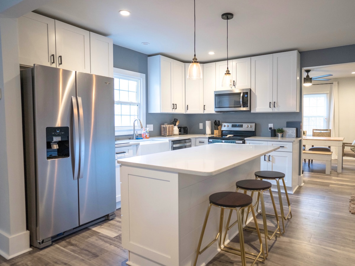 Prenovljeno prenočišče se nahaja v prehodnem območju NoDa, le 0,5 mi do železniške postaje lahke železnice ter v bližini postaje Uptown in Plaza Midwood. Prenočišče je v celoti opremljeno z vsem, kar potrebujete, da bo to vaše prenočišče oddaljeno od doma. Odprite steklenico vina in pripravite pojedino v naši veliki kuhinji Hišni ljubljenčki so dobrodošli! 50 USD za pse in mačke