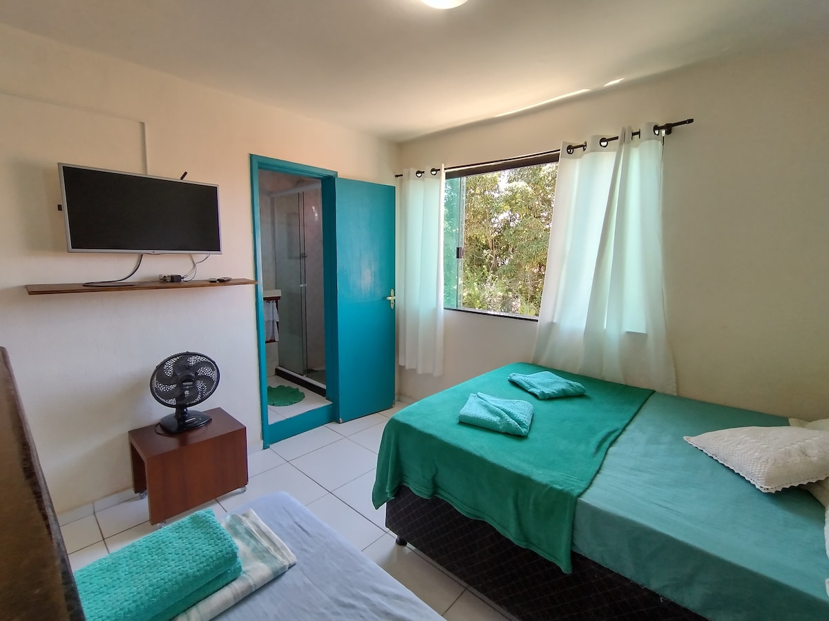 Prostorno stanovanje, spalnica in dnevna soba s klimatsko napravo ter zelo prezračena v očarljivi soseski Passagem. Udoben prostor z opremljeno kuhinjo, prostorom za postrežbo in garažo za nočitev. Zagotavljamo posteljnino in kopalniško posteljnino. Mirna in zgodovinska soseska. ✅ 3 minute od gastronomskega tečaja. ✅ 4 minute od Praia da Passagem. ✅ 4 minute od taksi čolna do Ilha do Japonês (200 m). ✅ 5 minut od cerkve São Benedito in Largo São Benedito. ✅ 15/20 minut od kraja Praia do Forte. ✅ 20 minut od središča mesta Cabo Frio. VSE PEŠ!