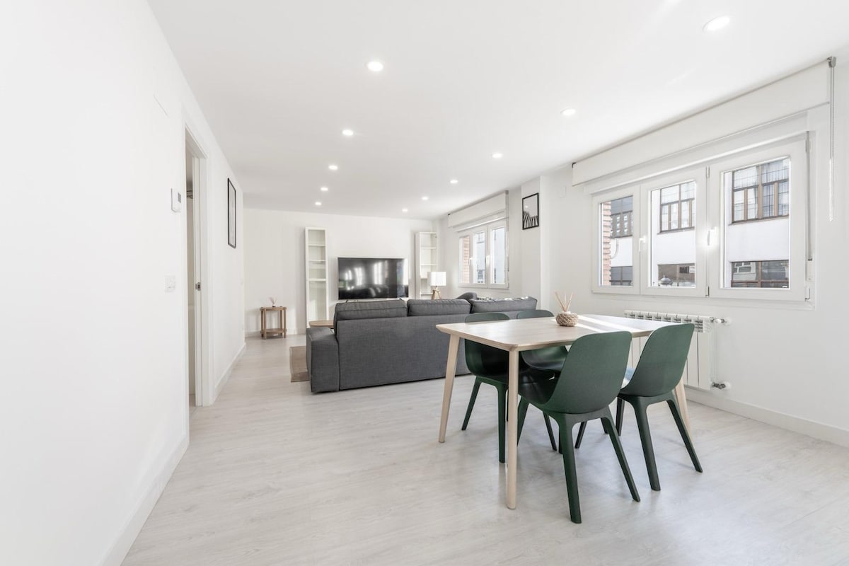 Super central apartment, two minutes from the bus station and five from the Ave train station. It's very bright and functional. Being centrally located near Salesas, El Corte Inglés, and Mercadona, you can walk all over the city and experience firsthand the atmosphere and all the beauty of Oviedo. The living room has a very comfortable sofa bed for one adult, with a €25 supplement for use as a bed. I want to offer you a charming, practical, and comfortable space. With Wi-Fi.