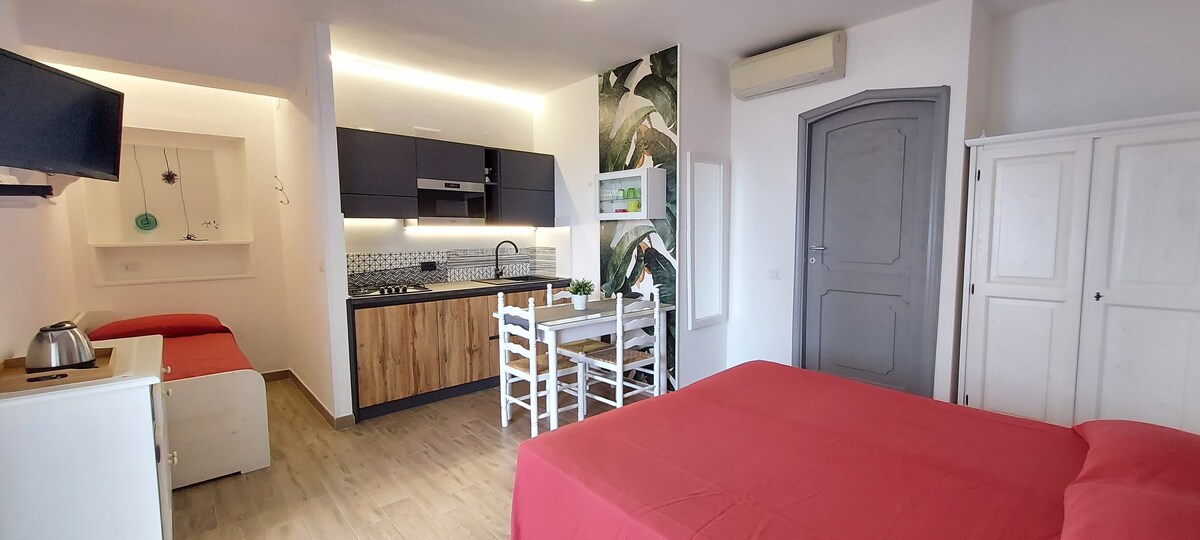 Popolnoma novo stanovanje 700 metrov od kristalno čistega morja Cala Gonone, ki je sestavljeno iz 1 spalnice z zakonsko posteljo, svetlega dnevnega prostora s kuhinjsko nišo in raztegljivim kavčem, kopalnice s prho in pralnim strojem, dnevne terase s pogledom na morje, opremljeno z mizo, stoli in naslanjači. Zasebni vhod in brezplačno parkiranje v bližini. Nahaja se v mirnem in mirnem predelu, v 10,15 minutah hoje je na voljo oprema, pristanišče, ob obali in brezplačne plaže.