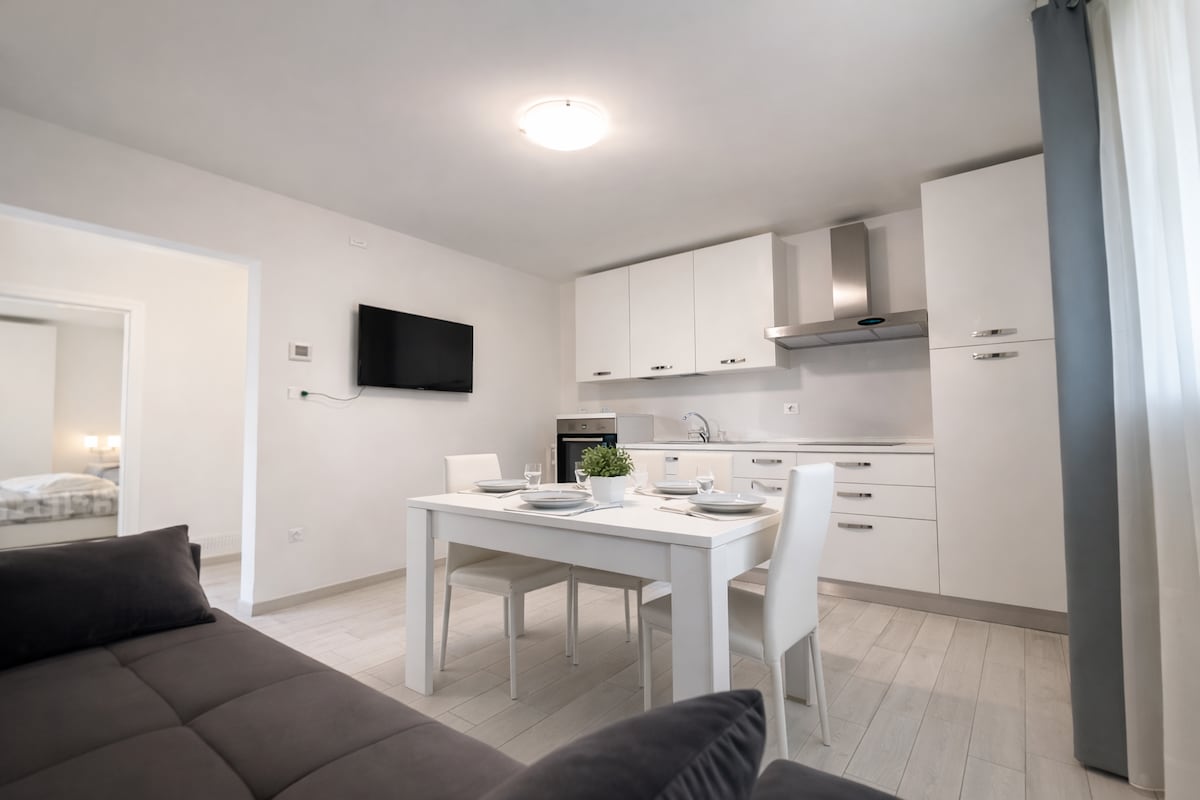 So vam všeč bivališča z zgodbo? Potem ste na pravem mestu. Le 10 minut vožnje z avtobusom (2 minuti hoje do postaje) od zgodovinskega središča Benetk je bila ta šola iz petdesetih let prejšnjega stoletja popolnoma prenovljena: stare učilnice so postale sobe in so dale življenje majhnemu kompleksu elegantnih in sodobnih stanovanj z varovanim in zasebnim parkiriščem. Naše učilnice so vam pripravljene izreči dobrodošlico. Šola se je vrnila!