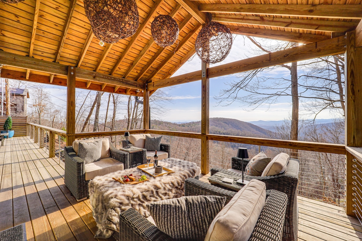 Pobegnite v sodobno prenočišče v obliki črke A ob vznožju gorovja Blue Ridge. Uživajte v zasebnem razgledu na naravo, masažni kadi, ognjišču in kletnem salonu s starinskim džuboksom. Prenočišče ima tudi založeno kuhinjo, kavni kotiček, pokrito teraso in vijugasto osvetljeno pot do zasebnega spa centra. Premišljeni detajli vključujejo polnilnik za električna vozila in Wi-Fi. Kot nalašč za miren gorski oddih, je kratka vožnja do Blowing Rocka, Dedka Mounta in Booneja z enostavnim dostopom do pohodniških poti, ogledov znamenitosti in smučišč.