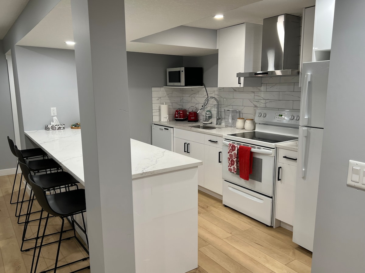 Udobna enosobna suita, oddaljena nekaj minut od letališča Dobrodošli v svojem drugem domu! Ta udobna enosobna kletna suita ponuja miren oddih le nekaj minut stran od letališča. Idealno za poslovne popotnike, postanke ali vsakogar, ki išče priročnost in udobje. Potrebujete dodaten prostor? Brez skrbi - poskrbeli smo za vas z dodatnim raztegljivim kavčem, ki zlahka sprejme dodatne goste • 9-MINUTNO LETALIŠČE YYC • 12-MINUTNO NAKUPOVALNO SREDIŠČE CROSSIRON • 22 MIN DO CENTRA MESTA • 90 MIN BANFF