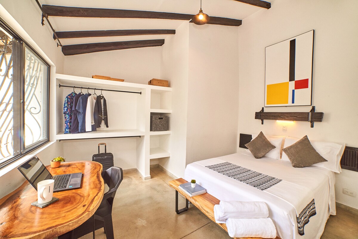 *POPOLNOMA NOVO* rustikalno, vendar razkošno in sodobno predelano stanovanje v San Antoniu. Do najboljših restavracij, najboljših barov/nočnih klubov v Caliju se lahko sprehodite peš. Elegantno predelano stanovanje se nahaja v znameniti umetniški in kolonialni soseski v Caliju v San Antoniu in je opremljeno z vsem, kar potrebujete za udobno bivanje. Kuhinja, zakonske postelje, delovna površina, klimatska naprava, pralni stroj, pametna televizija in še več. Če iščete pravo kulturno mestno doživetje z vso opremo in udobjem, potem je to vaše bivališče.