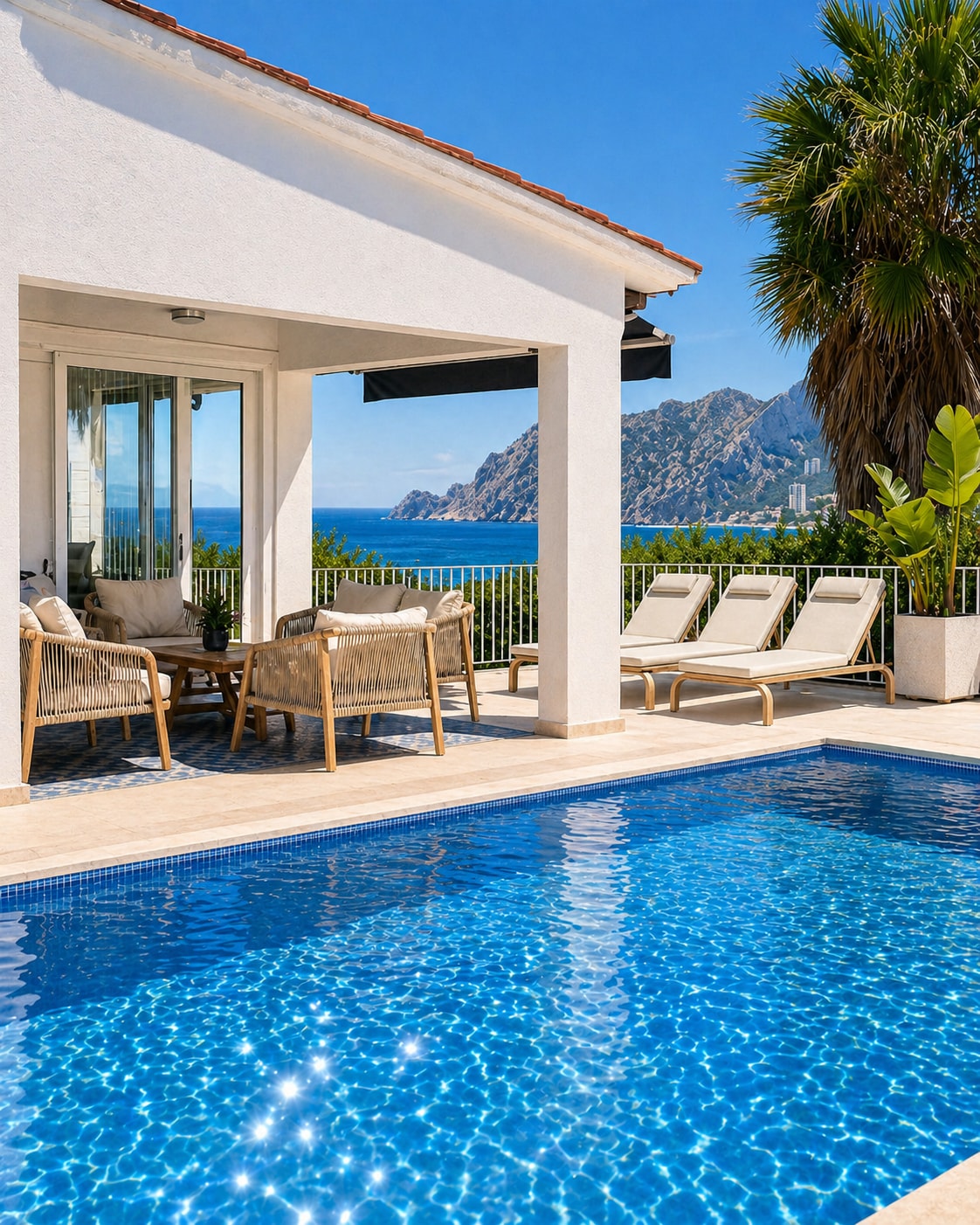 Exclusiva villa para 9 personas con espectaculares vistas al mar y al Peñón de Ifach. Renovada en 2026, ofrece piscina privada, cocina exterior con barbacoa y varias terrazas y porches. Ubicada en una zona tranquila entre Calpe y Benissa, a pocos minutos a pie de la playa La Fustera y Cala y puerto Los Bassetes. Ideal para familias y grupos que buscan un refugio y privacidad para pasar sus vacaciones, teletrabajar o como base para descubrir las mejores rutas ciclistas en la Costa Blanca.