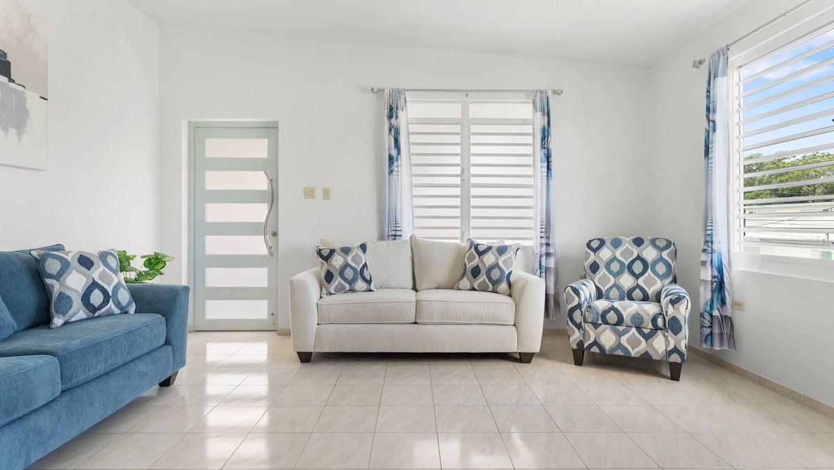 Zberite svojo ekipo v prostorni počitniški vili Casa Calvache v Rincónu s 5 spalnicami in 3 kopalnicami, ki je kot nalašč za družine in prijatelje. Uživajte v bazenu s slano vodo, razgledu na sončni zahod nad oceanom in bujnih sadnih drevesih na posestvu. Zasebno tropsko prenočišče je le nekaj minut oddaljeno od plaže Playa Los Almendros in drugih plaž v Rincónu, ki so znane po odličnih valovih za deskanje, restavracijah in nočnem življenju. Ponuja sodobno udobje, odprte prostore in idealno mesto za sprostitev, ponovno povezovanje in skupno raziskovanje zahodne obale Portorika.