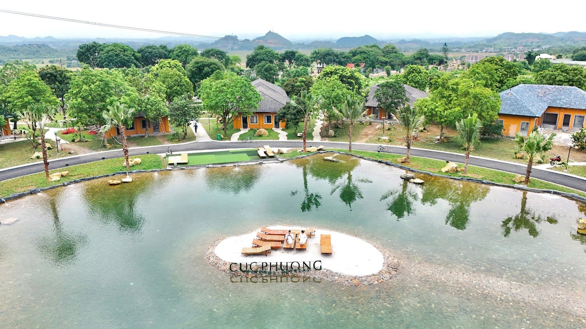 Thanh Xuan Garden Villa offers a luxury retreat set in the natural beauty of Cuc Phuong. This modern villa features three lake-view sides with a stream running through the garden, five spacious bedrooms with large glass windows and elegant bathtubs, and a private 150 m² pool. A 2000 m² garden provides space for dinners, BBQs, or boutique events. Guests enjoy free access to hot and cold mineral pools, premium sports areas, and resort bicycles. Ideal for private, peaceful retreats great escape!