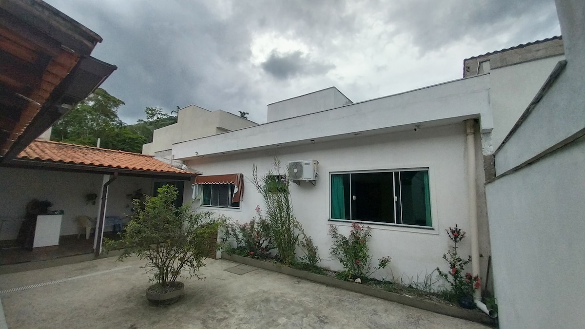 🌿 Udobna garsonjera sredi narave Nahajamo se na zgodovinski cesti Estrada da Colônia, približno 10 minut hoje od središča vasi Vila do Abraão. Garsonjera se nahaja nad našo hišo in ponuja razgled na hribe, poraščene z atlantskim gozdom. Obdan je z zelenjem in zaziban z nežnimi zvoki narave, zato je to miren in odmaknjen prostor – kot nalašč za polnjenje baterij po dnevu na plaži.