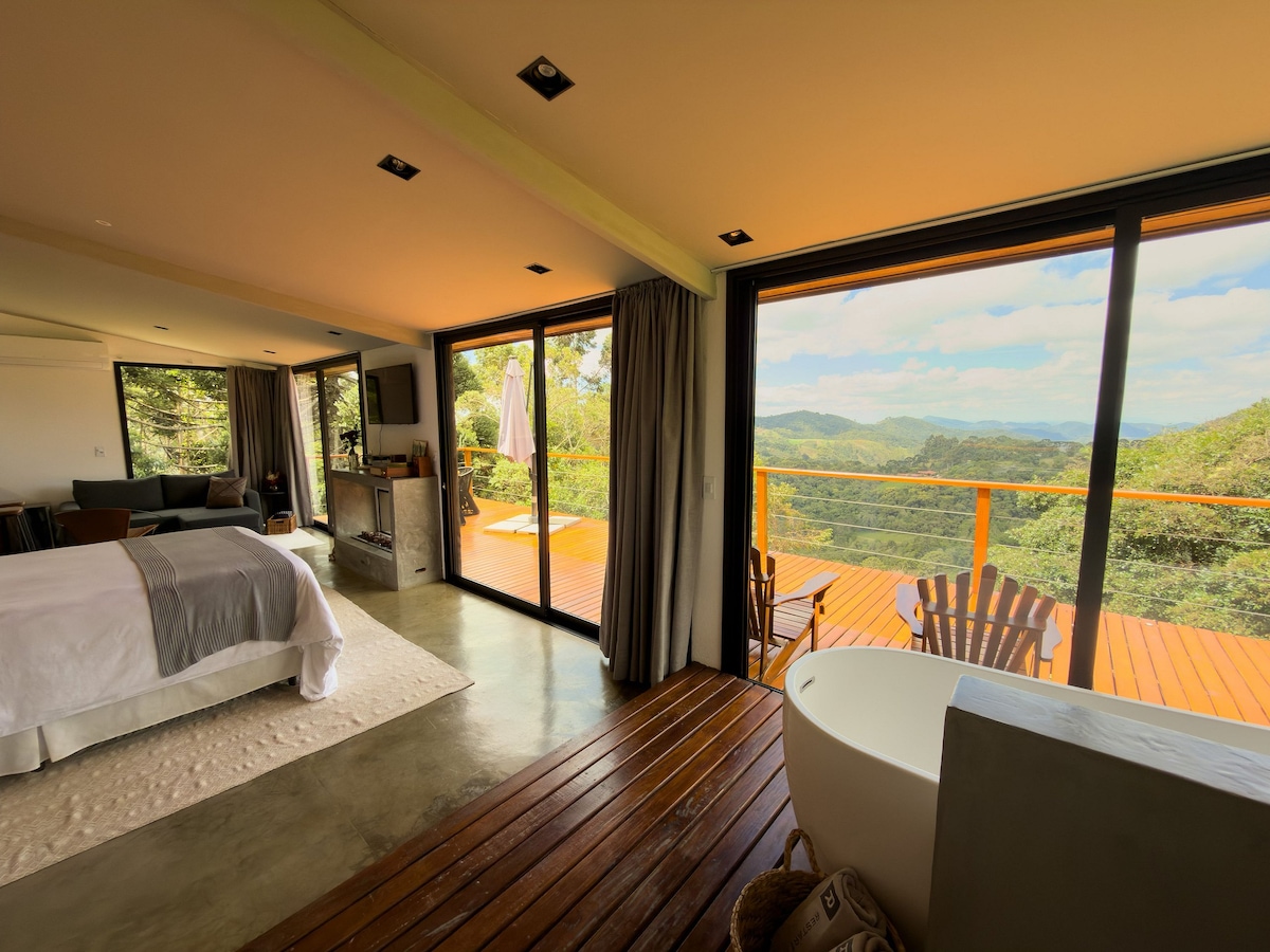 Descubra um refúgio exclusivo a 13 km de Monte Verde, cercado por natureza preservada. Chalés envidraçados com arquitetura contemporânea oferecem integração total à paisagem e muito conforto. No mezanino, solarium e jacuzzi dupla criam um SPA privativo, com piso aquecido e lareira para os dias frios. Aproveite o lago com pesca esportiva, a trilha à beira do riacho e o céu estrelado da serra. Agora com cesta de café da manhã para começar o dia com sabor e carinho! 🌿