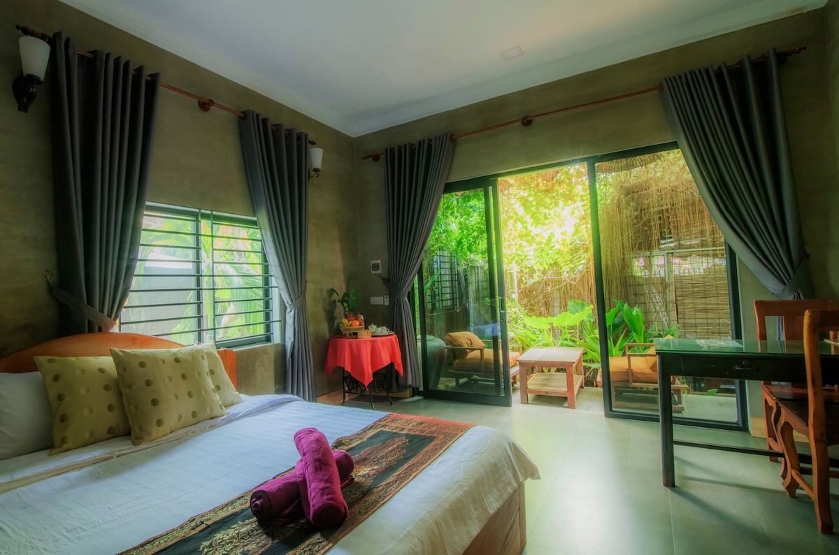 Dobrodošli v našem prenočišču. Vsaka soba ima udobno posteljo, zasebno kopalnico s toplo vodo, majhno kuhinjo in pralnico. Gostje lahko opravijo kuharski tečaj z mojo restavracijo »Nary Kitchen« stane 12 USD na osebo. Naše bivališče je zelo blizu osrednje tržnice, kavarne in nočne tržnice. Zunaj sobe boste imeli popoln dostop do čudovitega skupnega dvorišča, z zelenjem in visečo mrežo, na kateri boste lahko spali. Zagotavljamo vam nekaj, kar potrebujete. Počutite se kot doma 🏡
