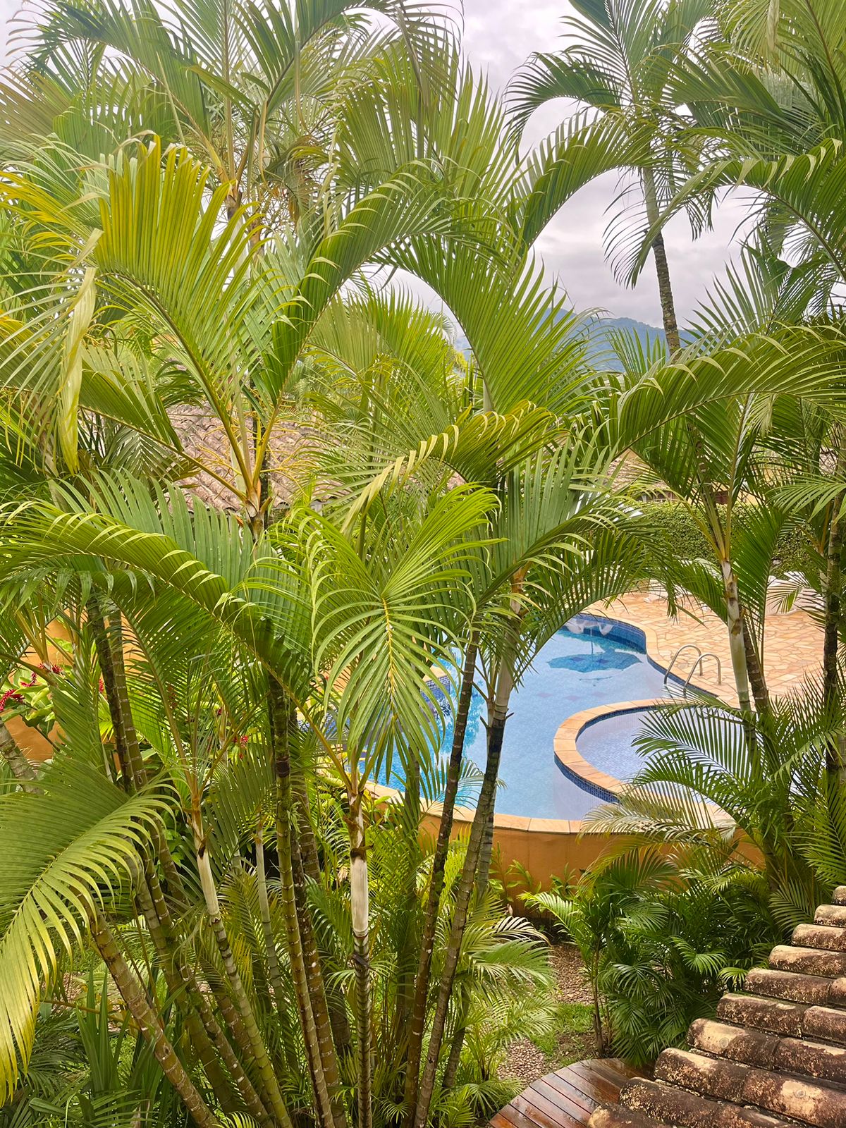 A poucos passos da praia, esta casa tropical cercada por grande jardim é um refúgio perfeito para famílias. Com 4 dormitórios, a casa acomoda até 10 pessoas. Há suíte no térreo, ideal para idosos ou pessoas com mobilidade reduzida. Todos os ambientes têm ar-condicionado, inclusive a cozinha, e a sala conta com lareira aconchegante. Os espaços externos são destaque, com terraço coberto, mesa grande, sofás, redes e churrasqueira, além de jardim tropical iluminado à noite.