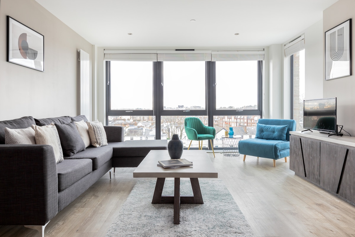 Sodobno stanovanje z dvema spalnicama in dvema kopalnicama v NW1, le nekaj trenutkov od Camden Towna in postaje St Pancras. Prostor se nahaja v novem objektu in je svetel, eleganten ter popolnoma opremljen za krajša ali daljša bivanja. Popolna lokacija za raziskovanje osrednjega Londona s hitrimi povezavami po mestu. Nahajate se v središču enega najbolj živahnih predelov Londona, obkroženi s tržnicami, restavracijami in nočnim življenjem Camdena.