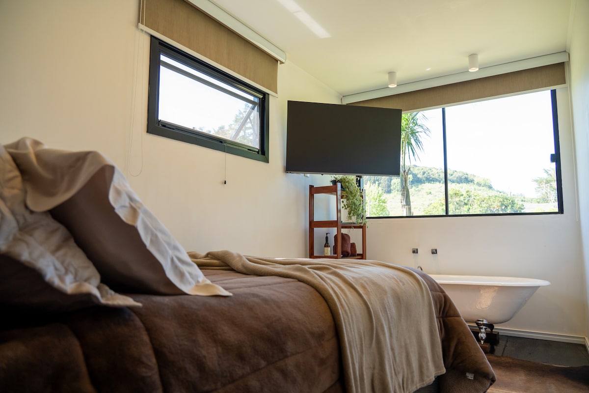 S privilegirano lokacijo je koča Mérica udobna in sodobna, ki temelji na kontejnerju, ki je potovala po svetu. Ima integrirano površino 40 m², s pogledom na vinograde in domača drevesa Serra Gaúcha. Opremljen je z gospodinjskimi pripomočki in toaletnimi potrebščinami ter udobno zakonsko posteljo in raztegljivim kavčem. Zunaj lahko uživate v sončnem zahodu na terasi, si privoščite piknik na vrtu ali pa se zberete okoli ognja. Idealno za umik s poti!