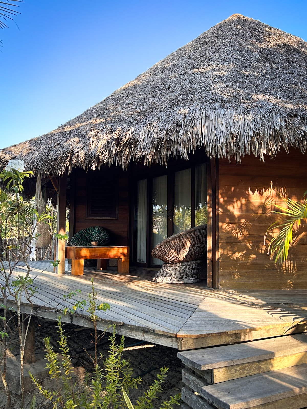 Casa Bela je popolnoma opremljena luksuzna hiša, ki se nahaja na privilegirani lokaciji s panoramskim pogledom na morje in ponuja neposreden dostop do plaže Guriu. Hiša združuje rustikalno, sodobno in elegantno zasnovo. Ima 2 prostorni suiti z očarljivimi zakonskimi posteljami tamano z mrežo proti komarjem, klimatsko napravo, pametno televizijo Android 32'LED in okni, ki ponujajo osupljiv razgled na morje in mangrove. Hiša ima pralnico, žar, varne in varnostne kamere.