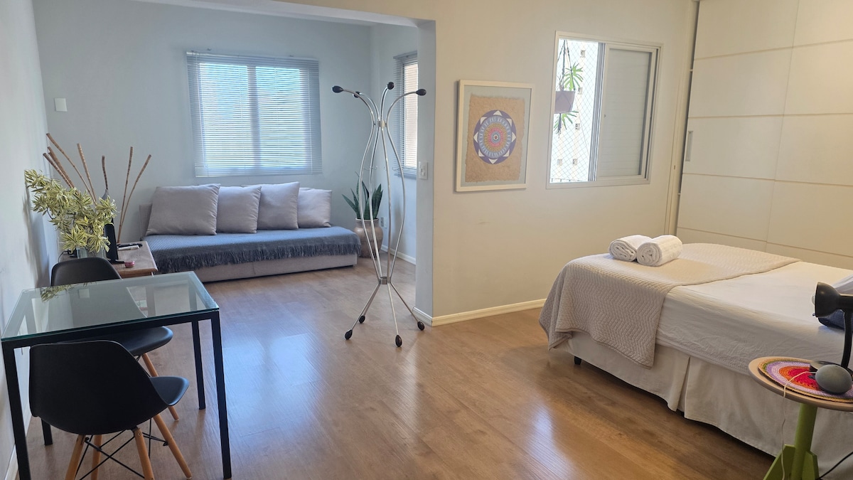Relaxe neste espaço calmo e cheio de estilo. Perfeito para home office e ou um long stay na cidade de Campinas . Amplo espaço, 60 mts! Sinta-se em casa com tudo que precisa para seu conforto. Portaria 24 horas com funcionários solícitos e prontos pra te ajudar no que for preciso. Nossa garagem é ampla e de fácil manobra, inclusive para SUV Caso queira curtir a cidade, pode caminhar ou deixar seu carro na garagem circulando de Uber e evitando pagar estacionamentos !!!