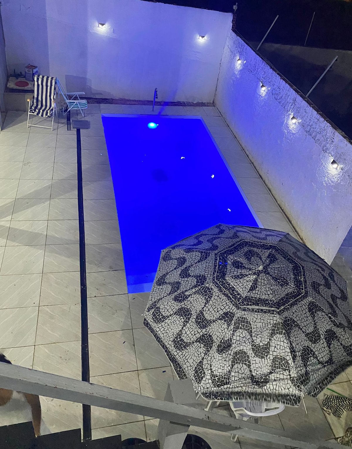 Hiša s 300 kvadratnimi metri v ograjeni skupnosti 800 metrov od plaže Mosqueiro, blizu plaže Dunas in bara Faraó. Velika, zračna nastanitev s 5 spalnicami, od katerih imajo vse klimatsko napravo, dve spalnici sta z lastno kopalnico, omara, 5 kopalnic, velika dnevna soba, velika kuhinja, shramba, pralnica, gurmanski prostor z žarom in bazen z masažno kadjo, primerna za velike družine.