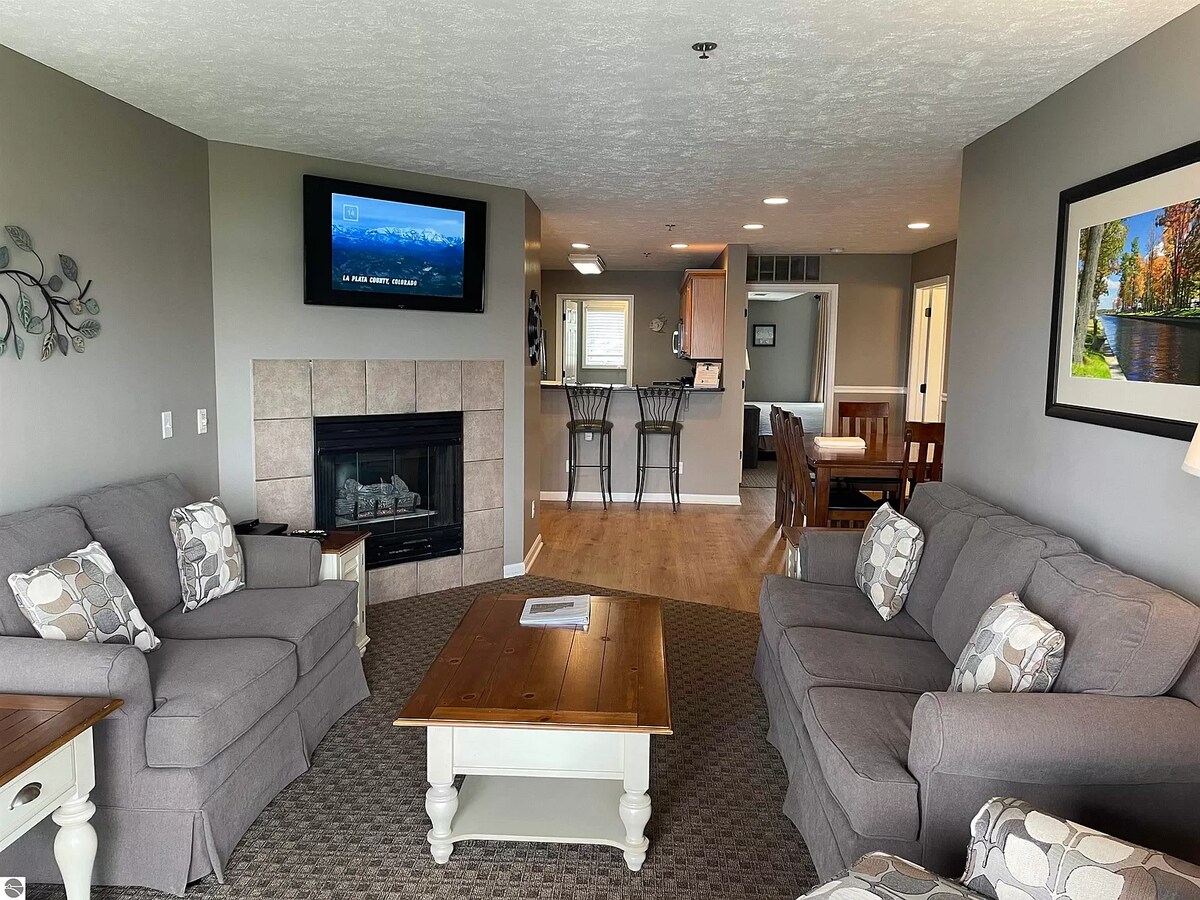 Relax with the whole family or friends at this peaceful and tranquil place to stay. Beautiful lakes for boating or fishing, 5 golf courses incuding PGA rated Tullymore and St. Ives, amenities such as indoor and outdoor pools with the gym, jacuzzi and the sauna, tennis courts and snow tubing hill, ice fishing and more. Tucked away for a perfect escape and unwinding for those that seek peace and relaxation - yet in the middle of everything offering many amenities for those who prefer active break