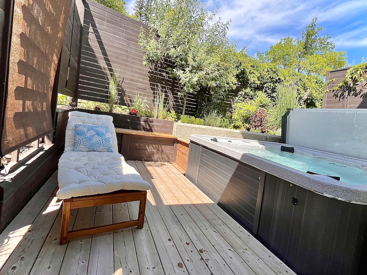 Step into your own private sanctuary just two blocks from downtown Invermere. Whether you're here to explore town or take the 8-minute stroll to Lake Windermere, your 'Hidden Oasis' is the perfect home base. After a day on the lake or ski hill, unwind in the private 8-person hot tub tucked away in a tranquil garden, or cozy up by the gas fire pit on your patio. With custom master suite and whimsical sleeping pod, this unique retreat offers a private, peaceful escape you won't find anywhere else!